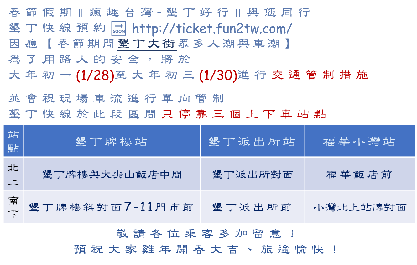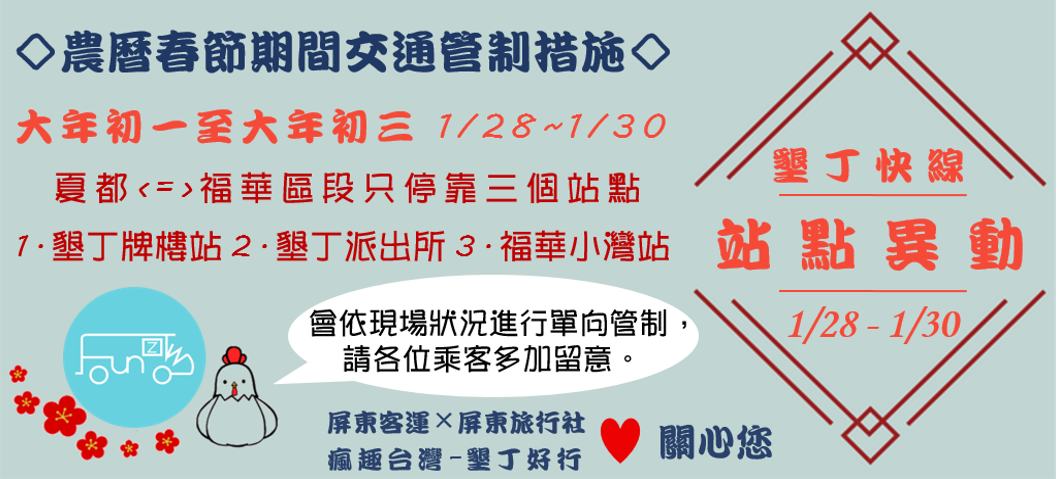 春節期間【墾丁快線站點異動】公告