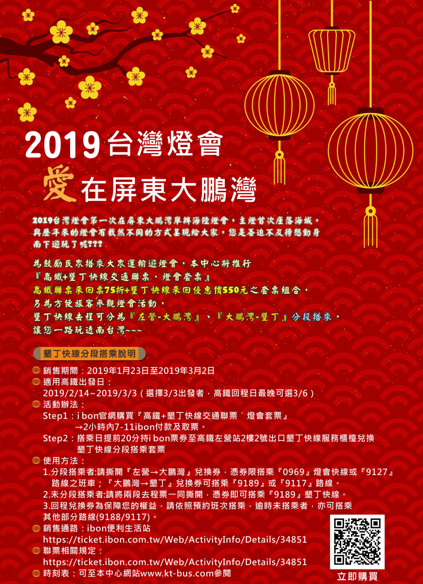 坐高鐵來看燈會囉~為配合屏東燈會推出「左營-大鵬灣」、「大鵬灣-墾丁」可分段搭乘兌換券,讓您參觀完燈會後可以一路南下至墾丁遊玩喔😁😁😁
