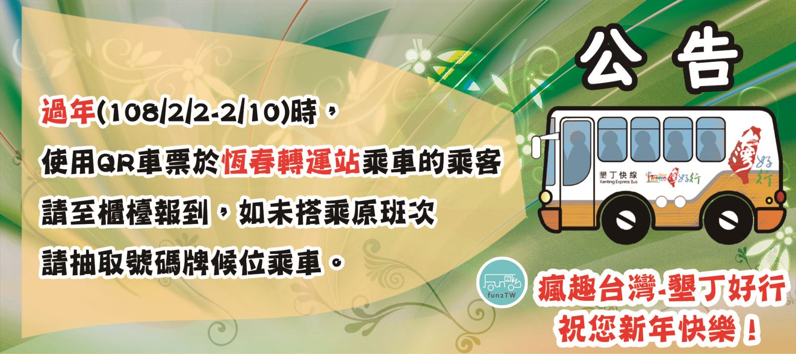 公告-過年恆春轉運站搭車須知: