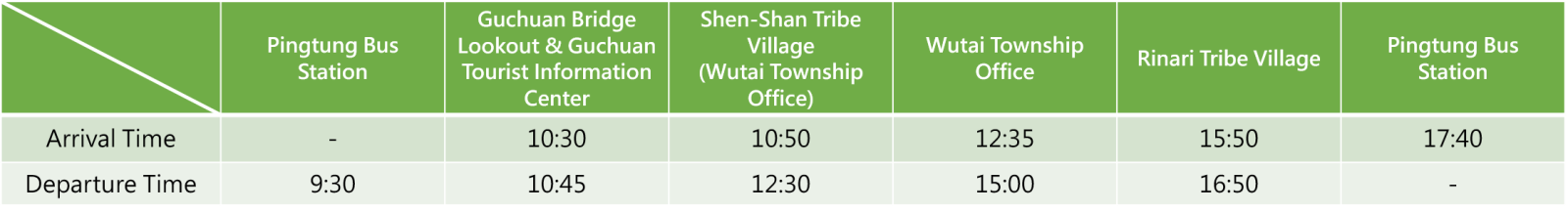 2. Please wait at Platform 5 of Pingtung Bus Station before the departure time (09:30am).