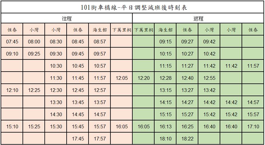 因新冠病毒疫情影響(改班公告)101橘線平日班次於109年5月1 日起更動。
