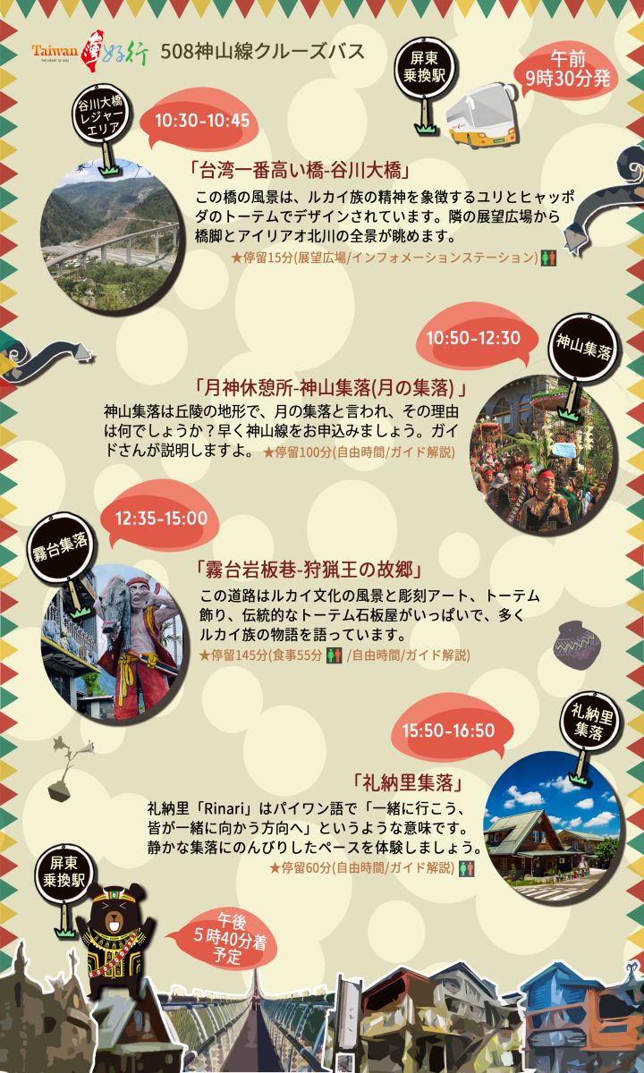 台湾良いルート神山線 土曜(昼食含み、アボリジニクラフトDIY) 人気モデルコース