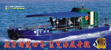本公司擁有墾丁參號‧陸號‧捌號,三艘均是國內外造船頗受好評價"亞港造船公司"所承造。漁樂漁船加裝船底強度玻璃,92年度經屏東縣政府同意改造後,委託中國驗船中心代執特別檢驗合格。
