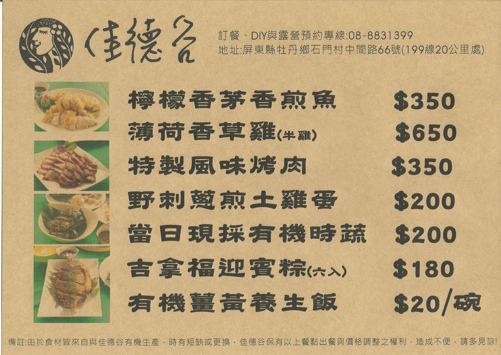堅持有機、在地、原民風味, 用有機栽種的香草,料理山土雞、山泉鮮魚、 原風味烤肉等新鮮食材,吃得到牡丹鄉排灣族 的味道~