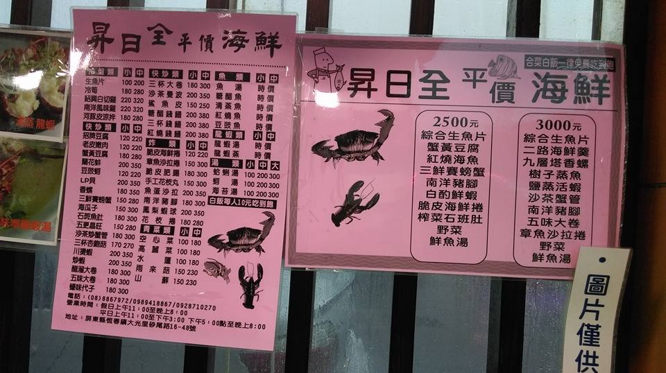 昇日全平價海鮮店是由2位7年級生的老闆所創的, 都是選當地新鮮的食材,而經過2位老闆的料理之後, 來吃過的客人,簡直不敢相信是這2位年輕的老闆所煮的, 而且平價就平價,不用怕太貴, 想嘗試的人,歡迎到墾丁 後壁湖 昇日全平價海鮮!! (不來您會後悔喔!!~~)