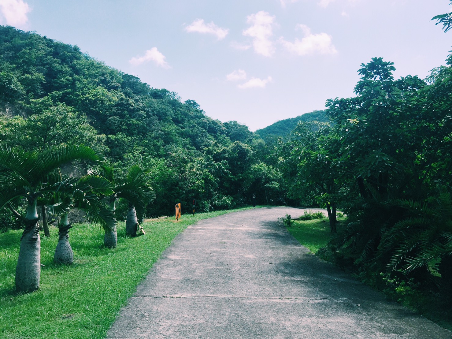 保力休閒農場後一個彎,就到了保力林場。林場有個歐洲風味的大門,頗有氣勢,進得大門,南洋杉、椰子樹、樟樹等高大的樹種撲面就營造了一股綠意。