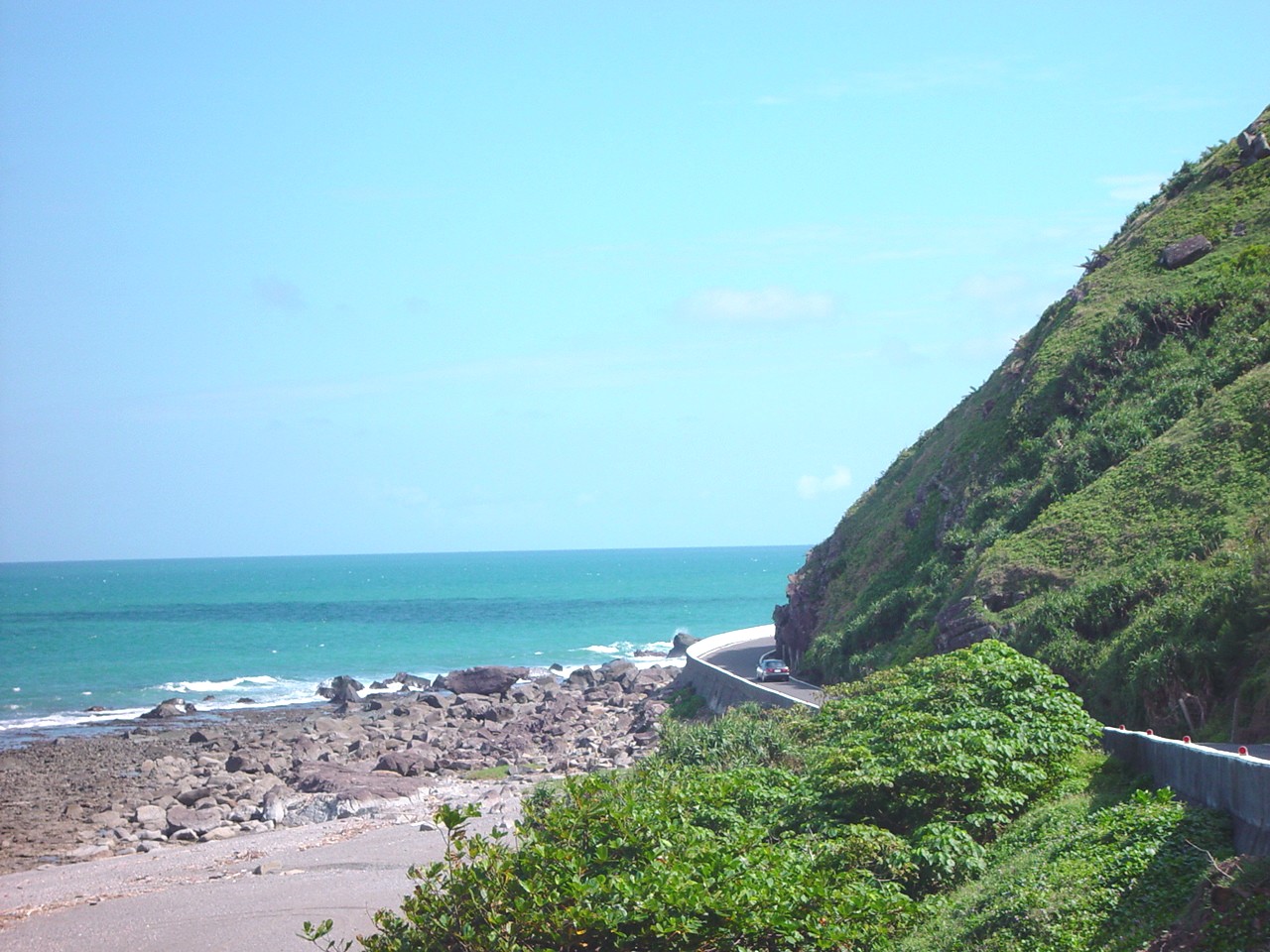 短短六、七公里的路程,依山傍海,卻有時黃沙漫漫,「青山、碧海、黃沙」是這裡最完美的寫照;東海路舊址的路面貼著海岸蜿蜒,路基也與海面等高,一個緩坡,看似山窮水盡已無路,林投欉後,卻又豁然開朗、柳暗花明。