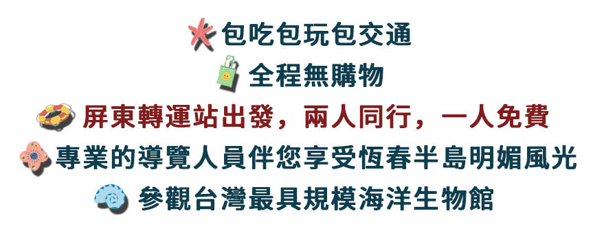 詳情請洽屏東旅行社08-7221292 (周一~周五 08:00~17:00)