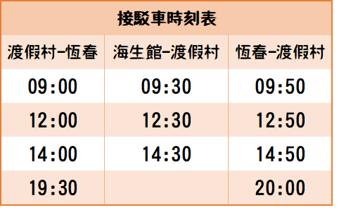 備註1:此接駁車為小墾丁渡假村負責,請當日搭乘飯店接駁車時再致電確認一次。