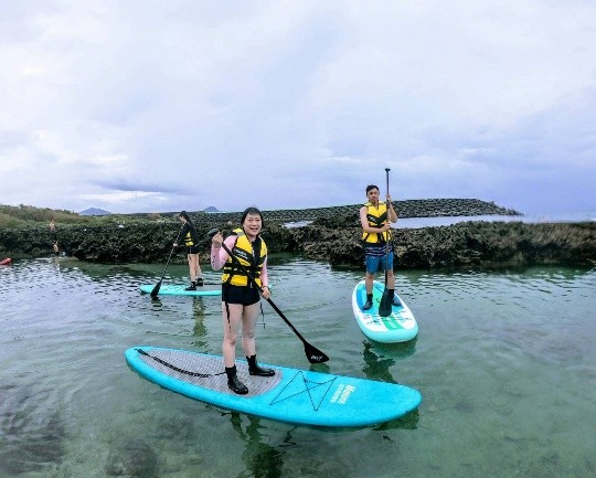 由專業教練帶領,進行 SUP 立槳水上活動,並於岸邊享用在地下午茶點心,感受海洋科普的動態面。